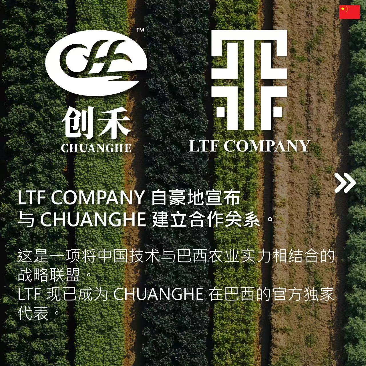 LTF COMPANY自豪地宣布与CHUANGHE 建立合作关系。这是一项将中国技术与巴西农业实力相结合的战略联盟。LTF现已成为 CHUANGHE 在巴西的官方独家代表。