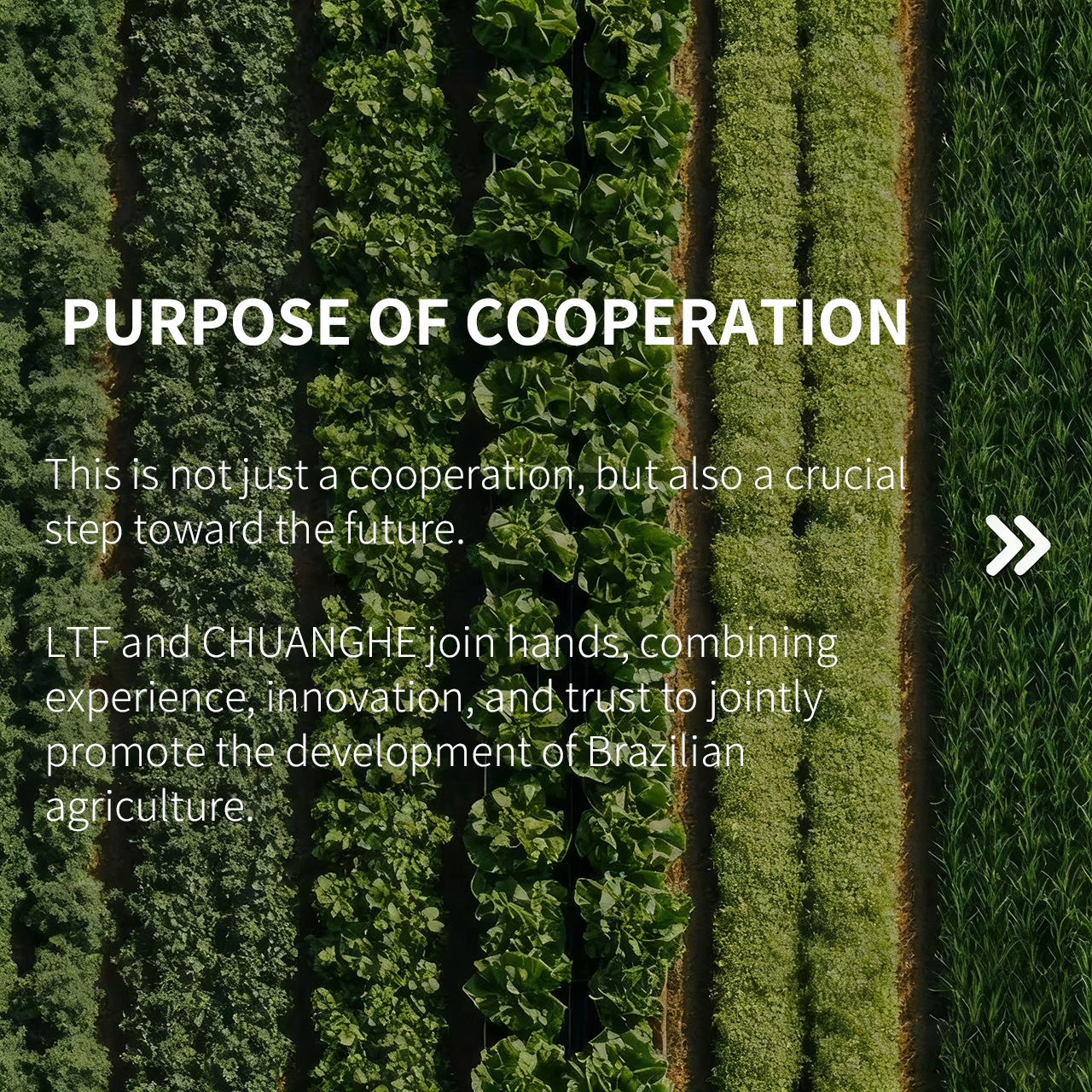 LTF COMPANY is proud to announce the establishment of a cooperative relationship with CHUANGHE. This is a strategic alliance that combines Chinese technology with Brazil's agricultural strength. LTF has now become the official exclusive representative of CHUANGHE in Brazil.